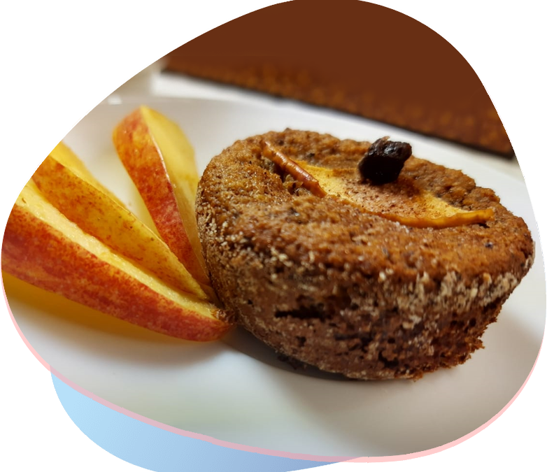 3. Colocar em forminhas individuais para muffins, decorar com pedacinhos de maçã. Polvilhar canela e sucralose na superfície do bolinho.